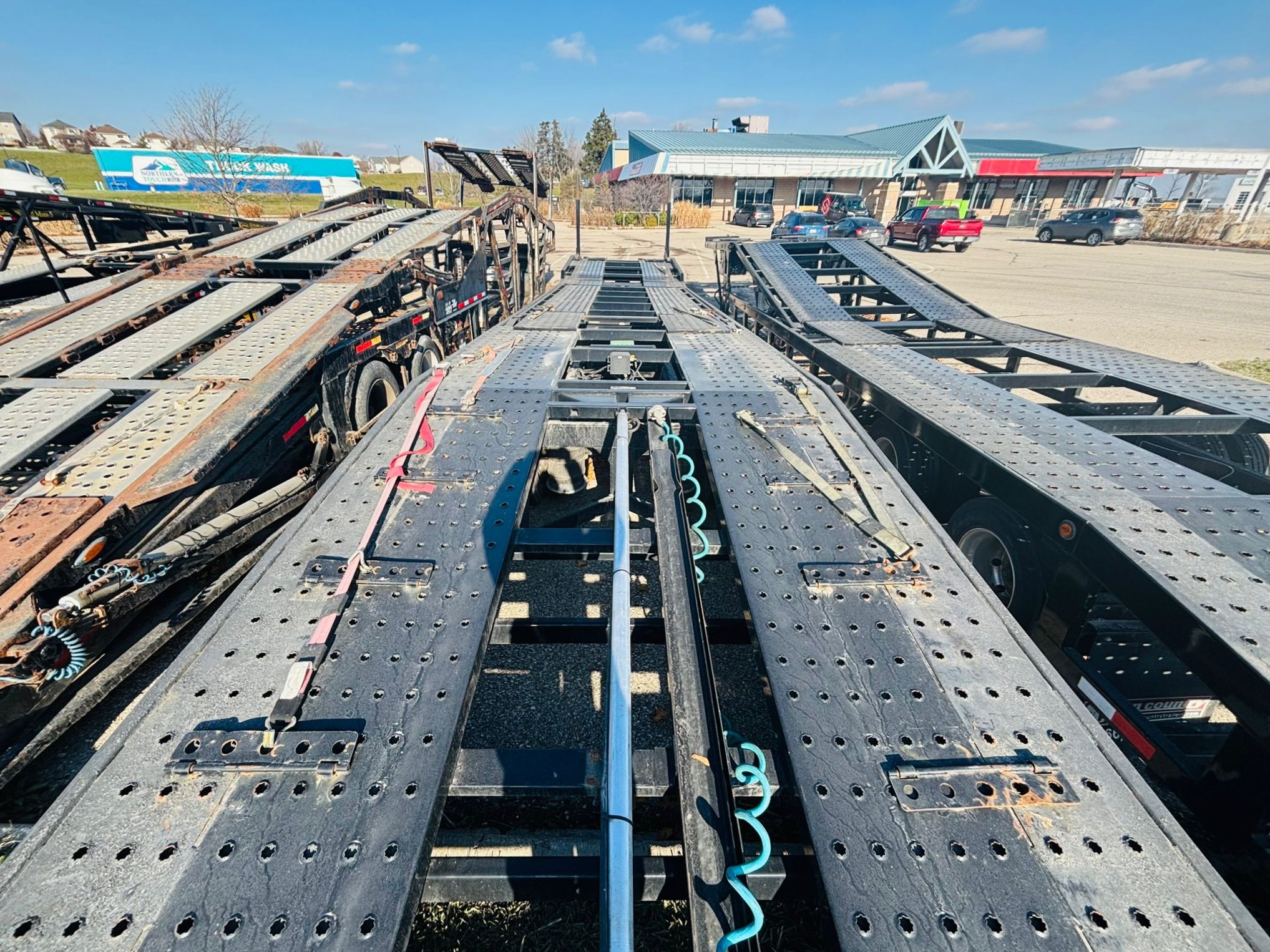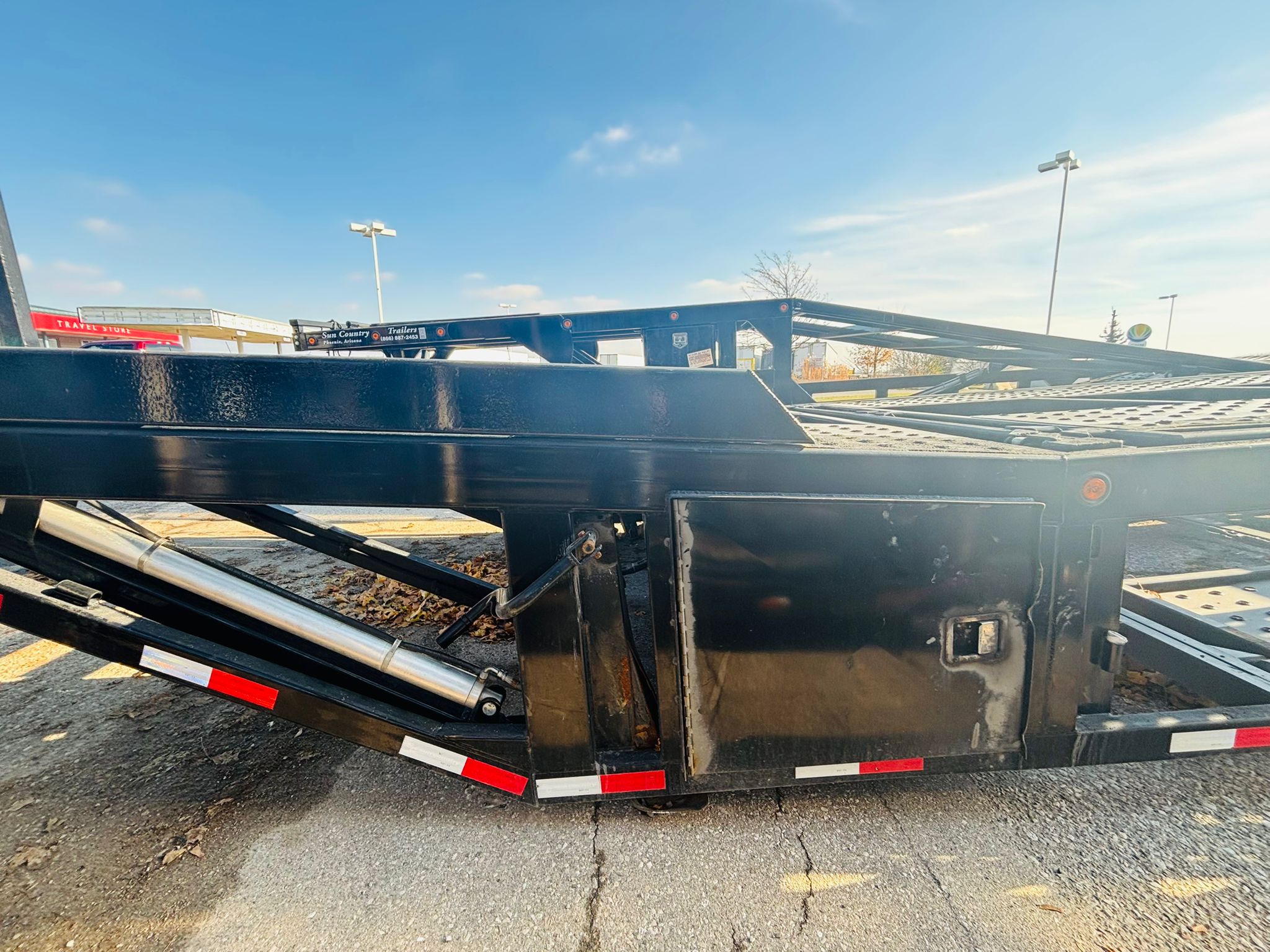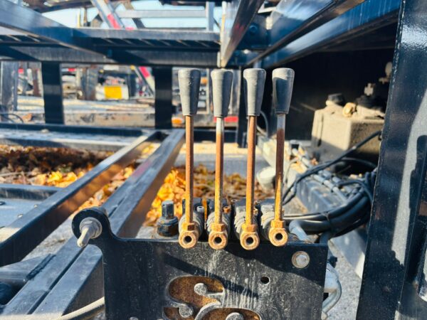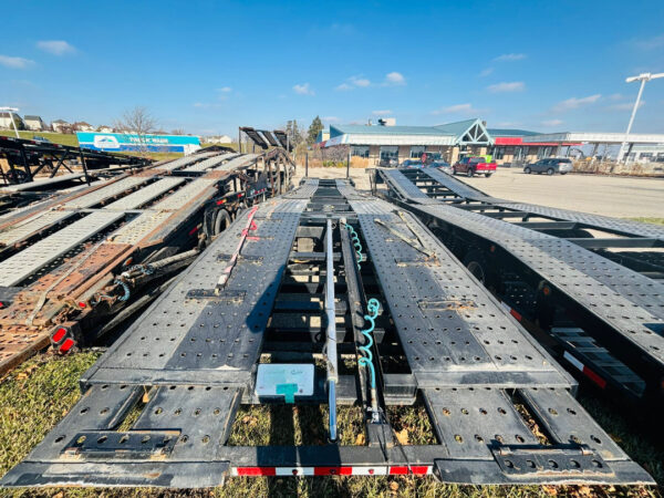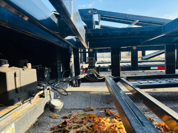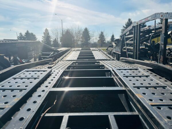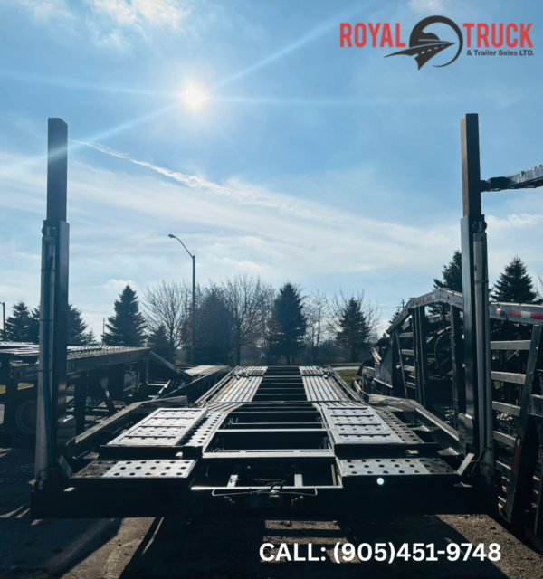 53′ CAR HAULER WITH GVWR: 45,000 lbs; Weight: 14,000lbs-17,5000 lbs; King Pin Distance: 60″-80″ & Modified Suspension. Features includes Self-contained hydraulic system, 3-Point ratchet straps, Heavy Duty Flooring and Ramps, LED package & Night Assist Lighting